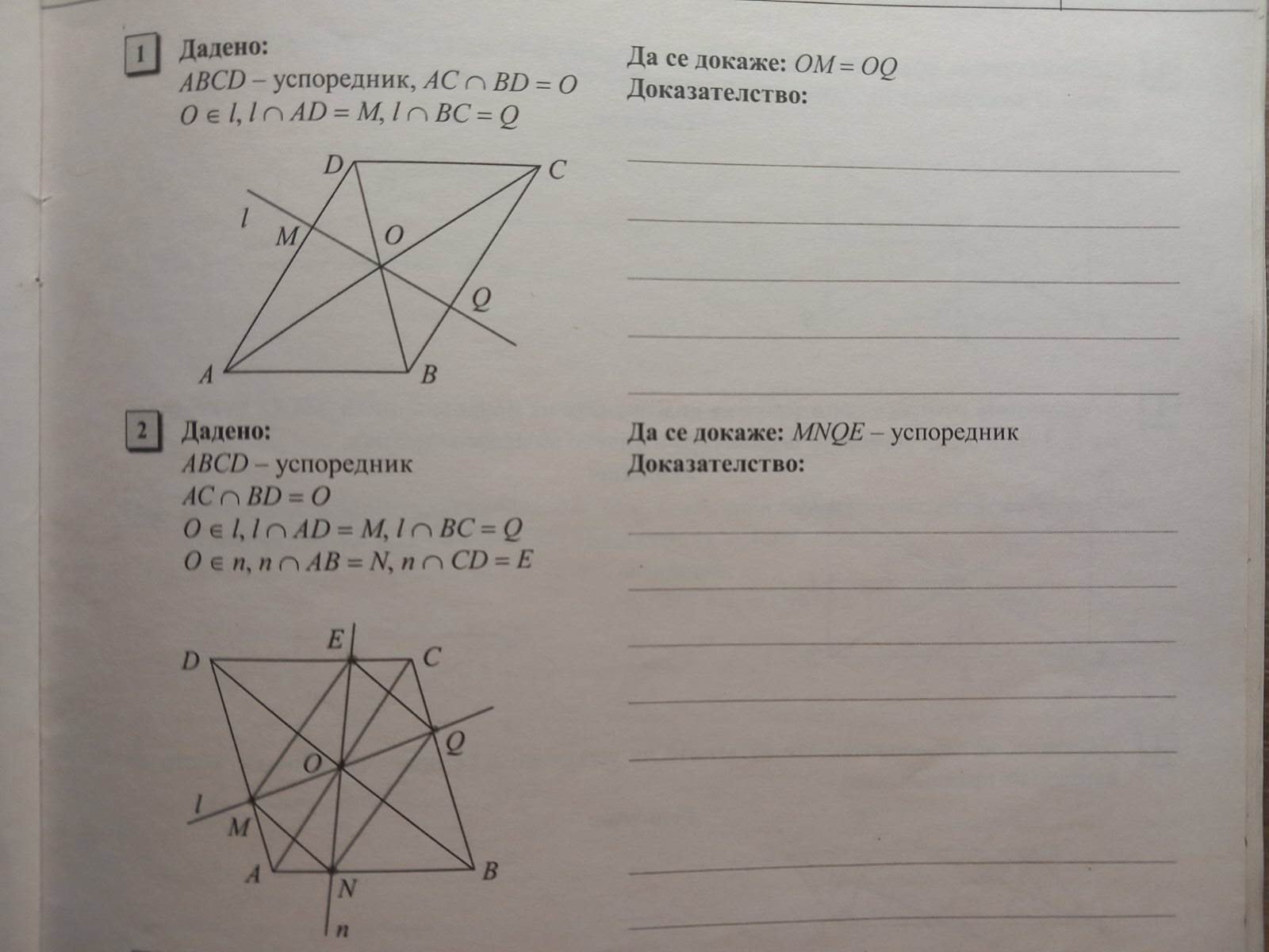 Вероника, за първата може ли да докажете, че триъгълник АОМ е еднакъв с триъгълник QOC?