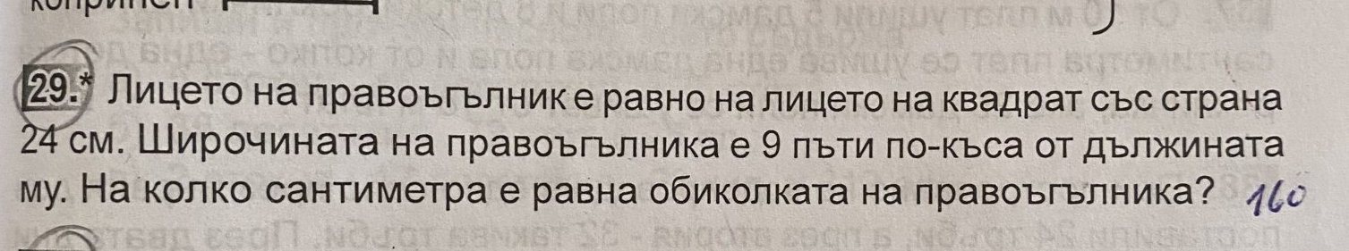по условие лицето на правоъгълника = 24 . 24 = х.9х