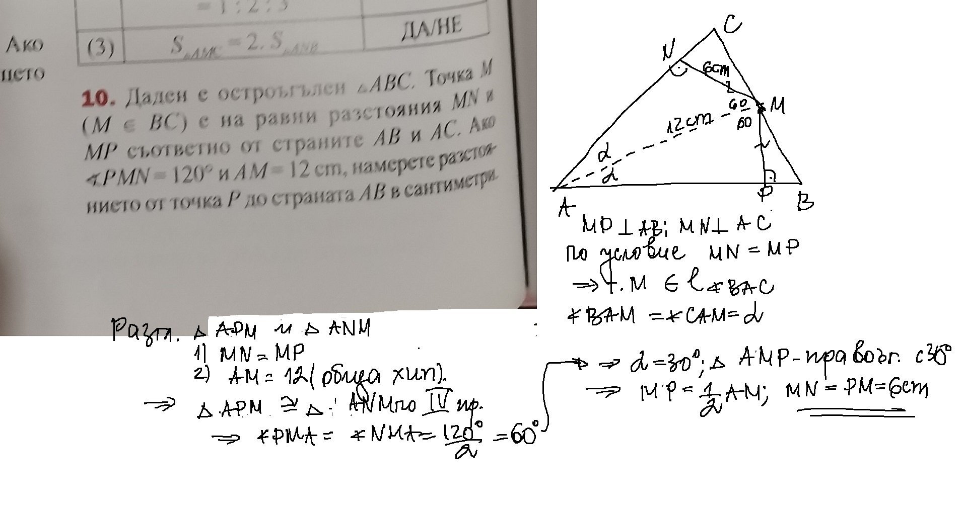 Само не разбрах кое е разстоянието на т.P до AB. Всъщност т.P не принадлежи ли на AC?