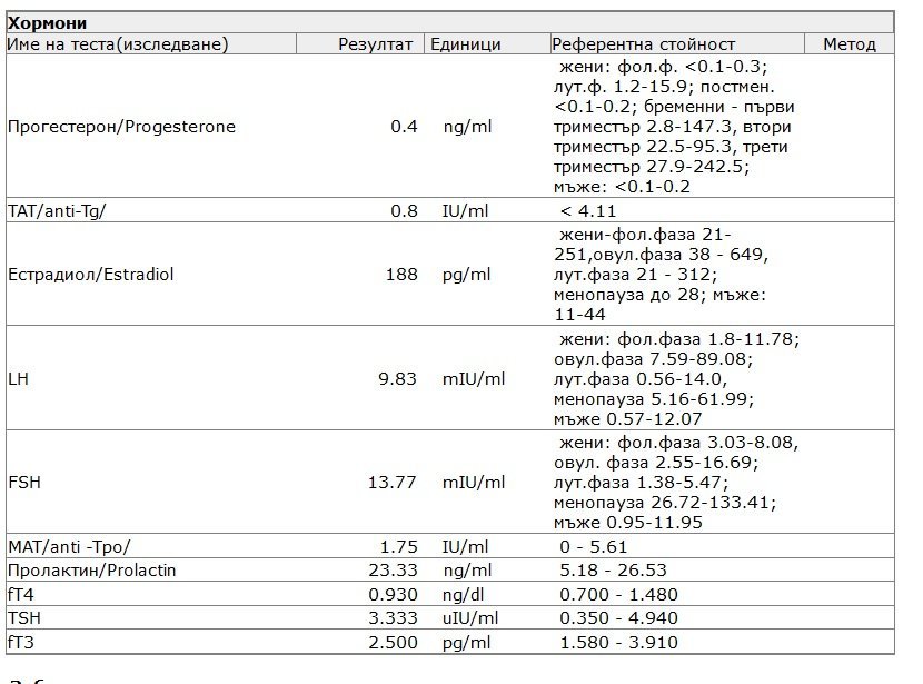 Преди няколко месеца качвах тук резултатите си, получих много ценна информация, но така и не открих ендокринолог, при когото да отида. Към днешна дата, не че съм открила лекар, но си пуснах отново част от изследванията + витамини + феритин.