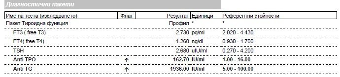 FT3 2.740 pg/ml, референтна стойност 1.580 - 3.910