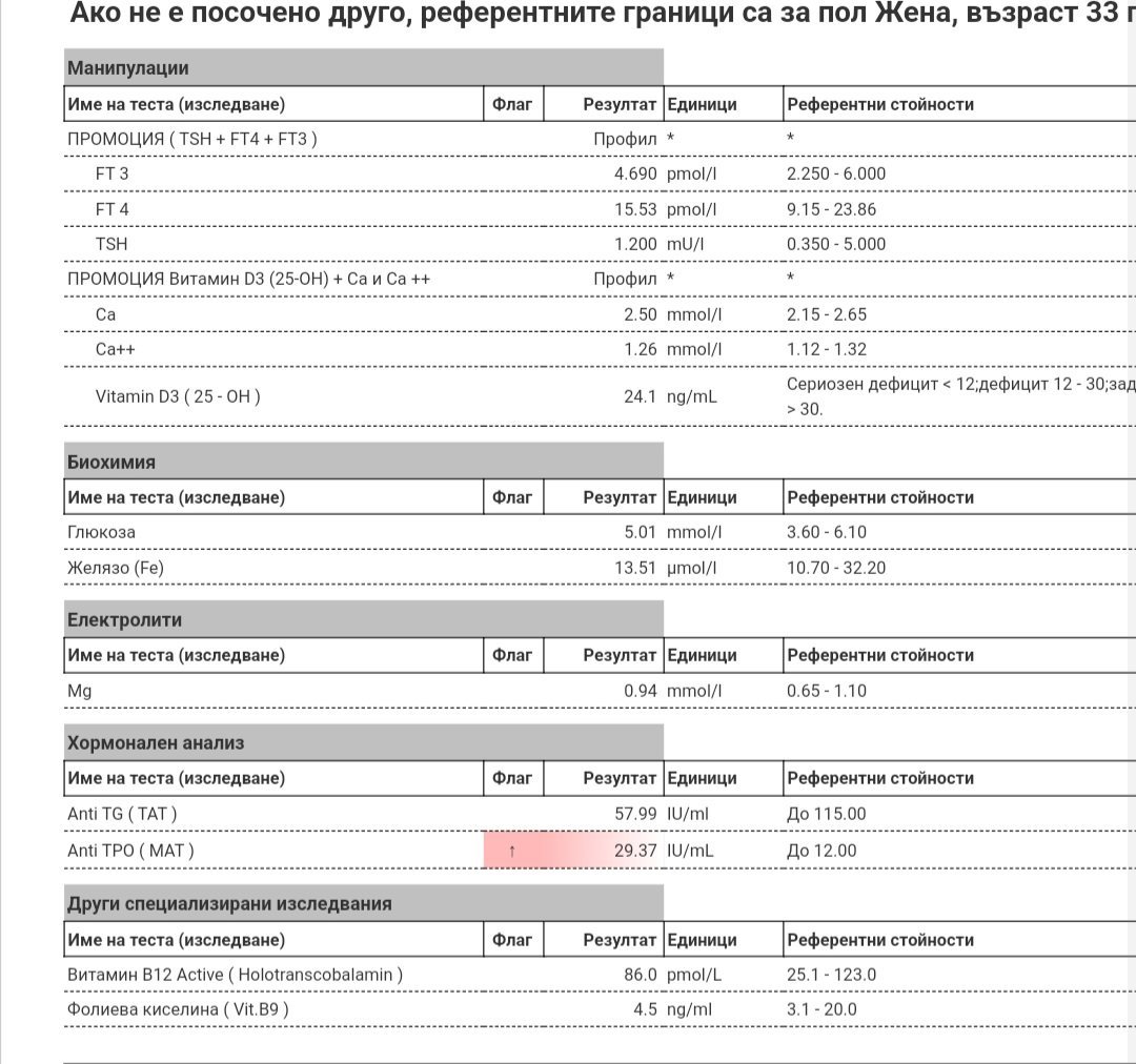 При проблеми с щитовидната жлеза е важно да се направи пълен щитовиден профил, който включва изследване на TSH, FT4 и FT3. Допълнително може да се препоръча изследване на полови хормони и нивата на витамини и минерали като D, B12, желязо, кортизол и други. Важно е консултиране с ендокринолог за определяне на най-подходящите изследвания за конкретния случай.