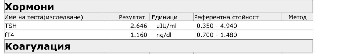 Април ТСХ 3.22 (положителен тест, смениха ми дозата на еутирокс 50).