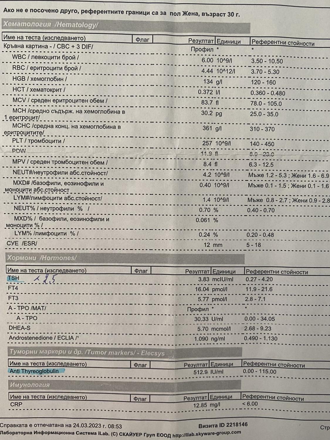 (CRP е малко високо, понеже бях хремава, но нали изследванията се пускат в точно определен ден от цикъла...)