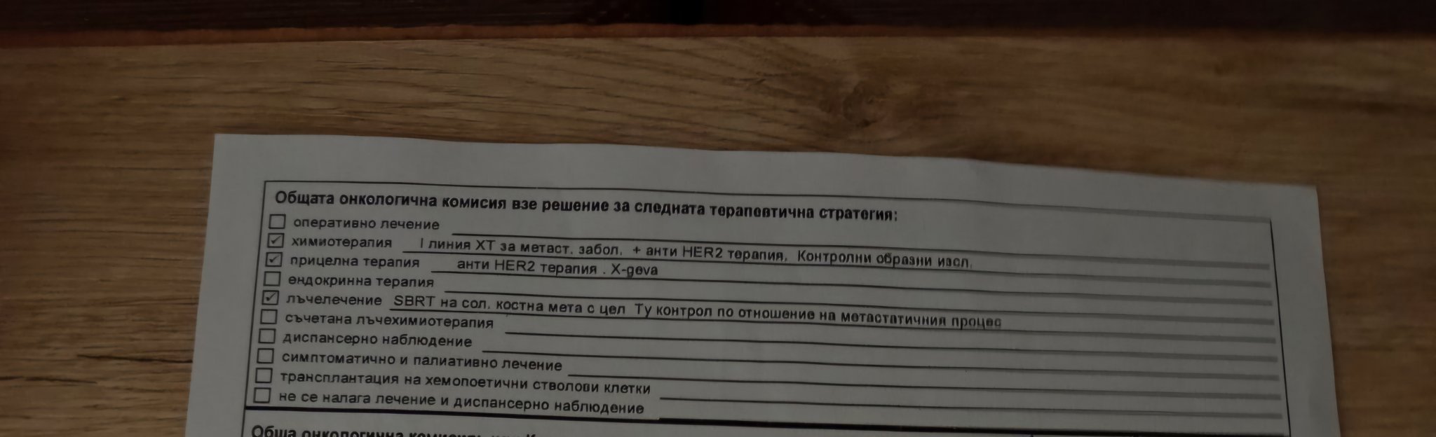Боряна, много благодаря за насоките. Страшно са ми полезни. Търсих, четох и ми се изясниха някои неща, включително и грешки в мисленето ми.  Няма все още епикриза от втората операция, предполагам се бави заради хистология, ако са взели нова такава.