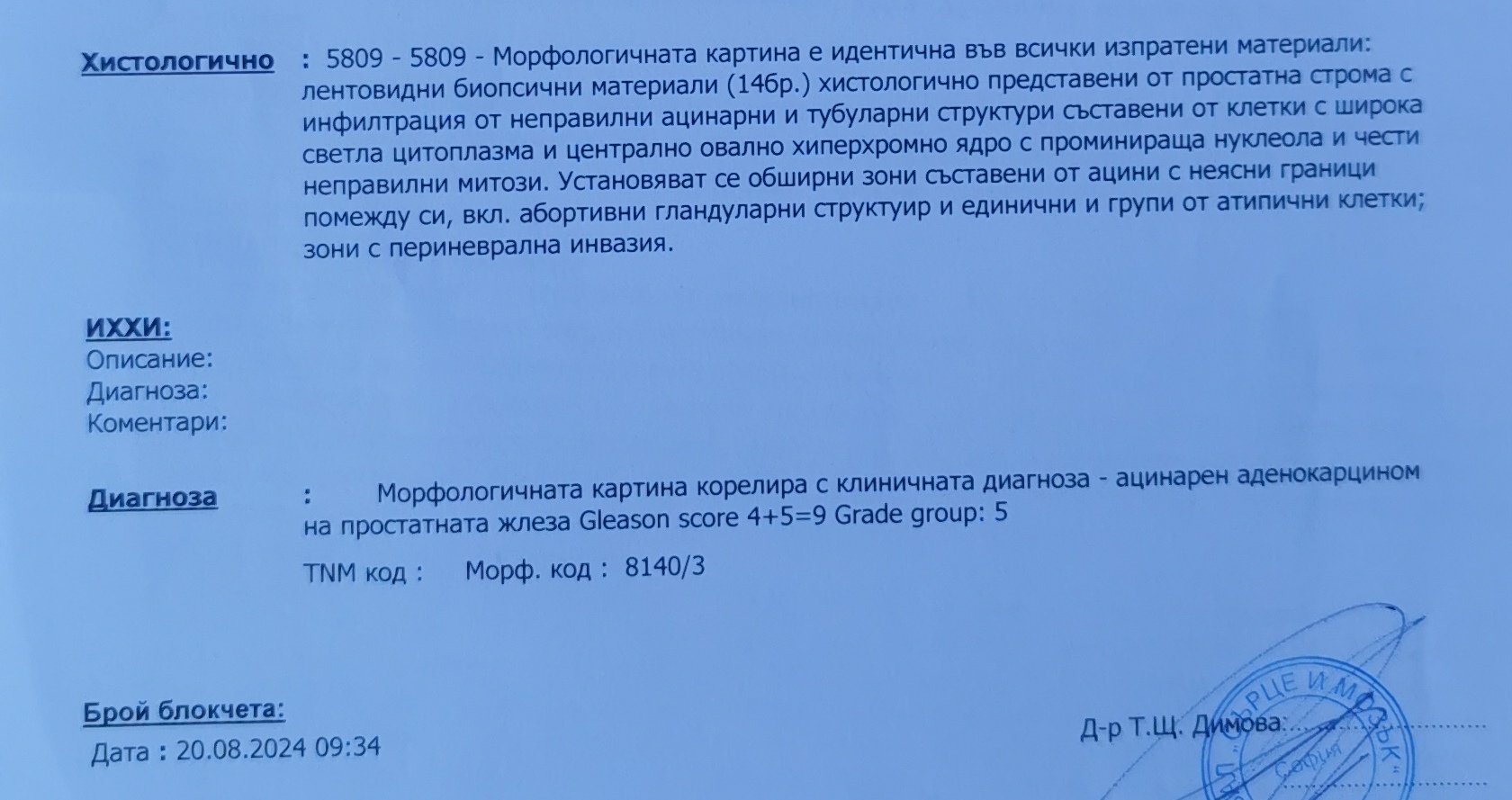 При ММ след биопсия се определи и вида на рака, и стадирането, и Глийсън-а.