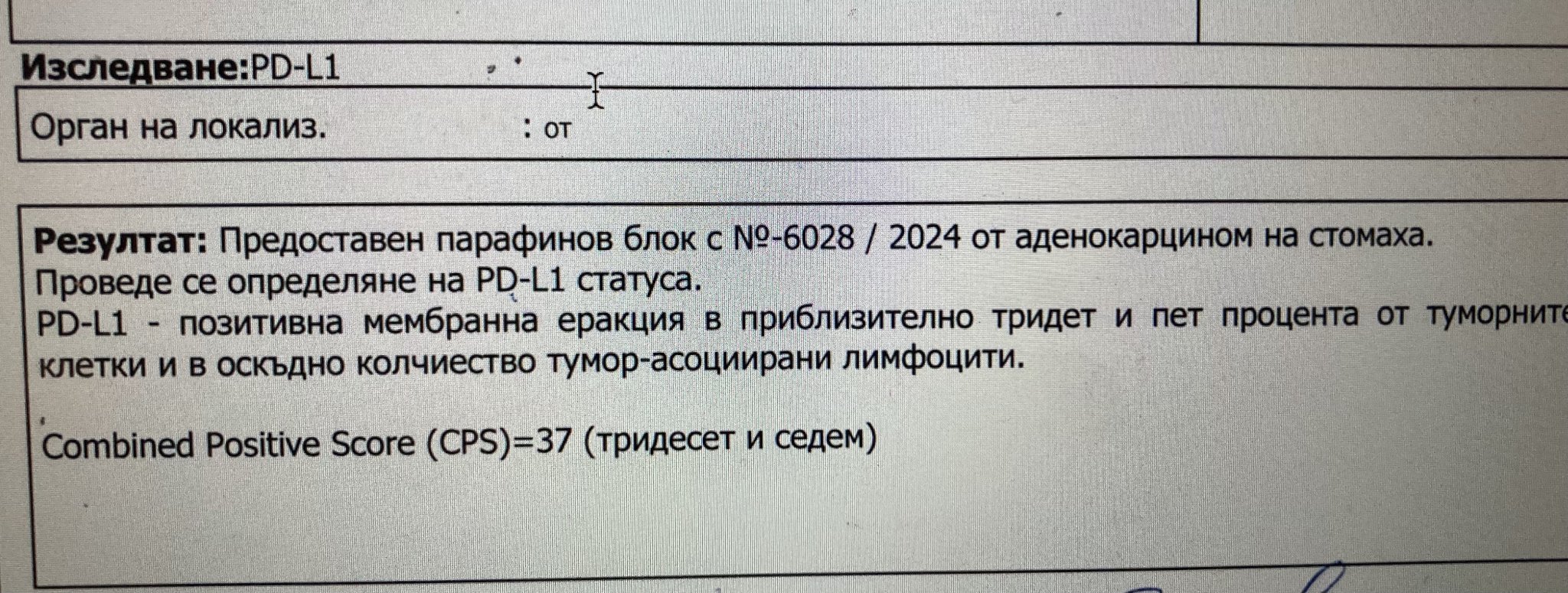 И-6028 / 2024. Ниско диференциран карцином на стомаха: