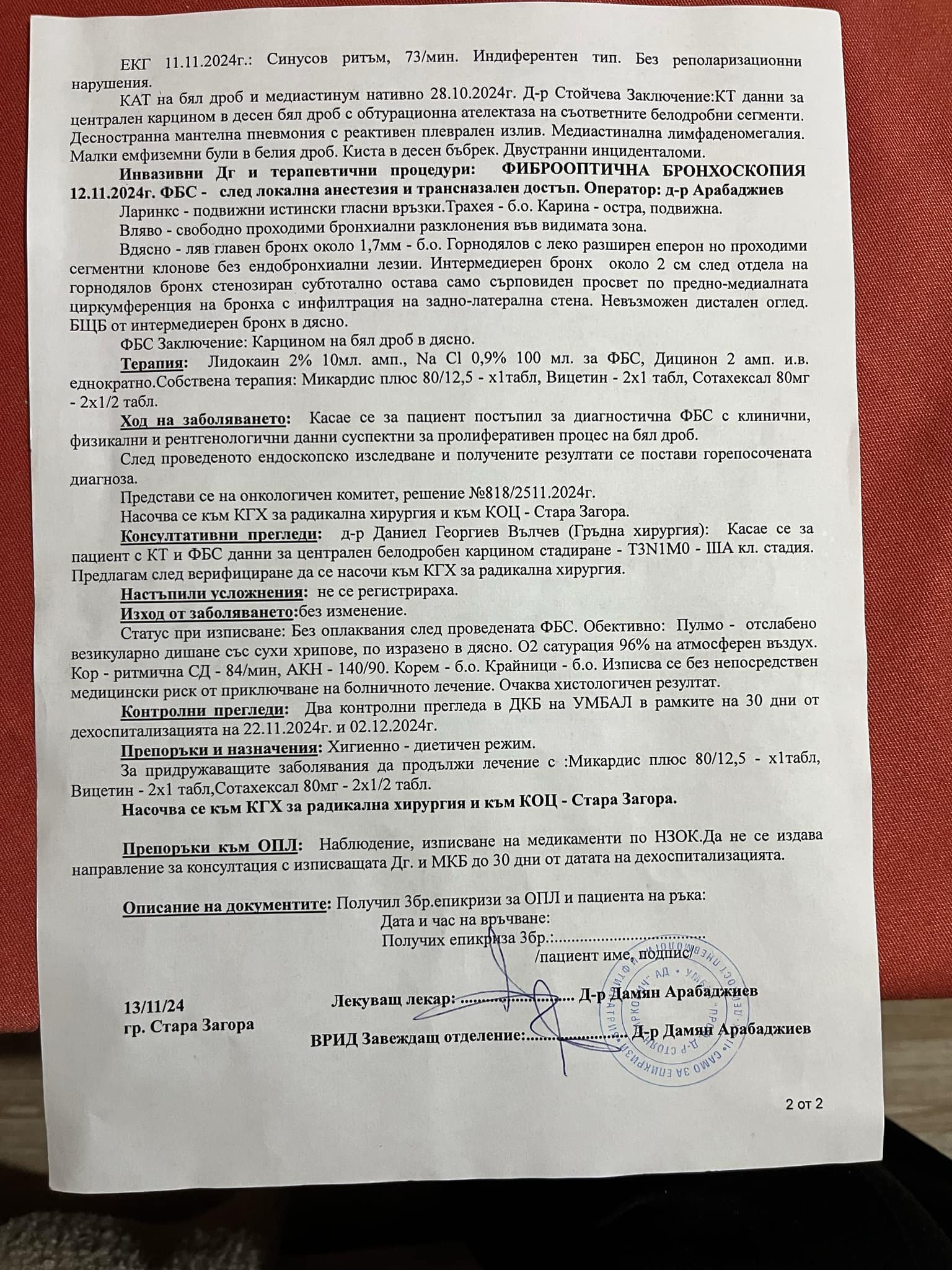 Засега можем да дишаме. До следващия преглед и изследвания.