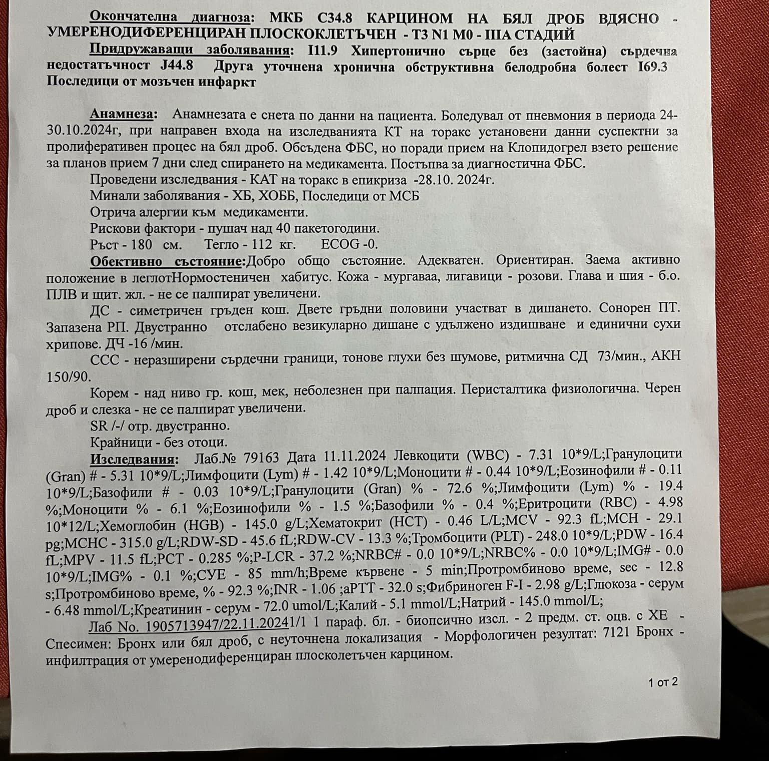В семейството се сблъскахме с УМЕРЕНОДИФЕРЕНЦИРАН ПЛОСКОКЛЕТЪЧЕН -Т3 N1 МО-ШІА СТАДИЙ