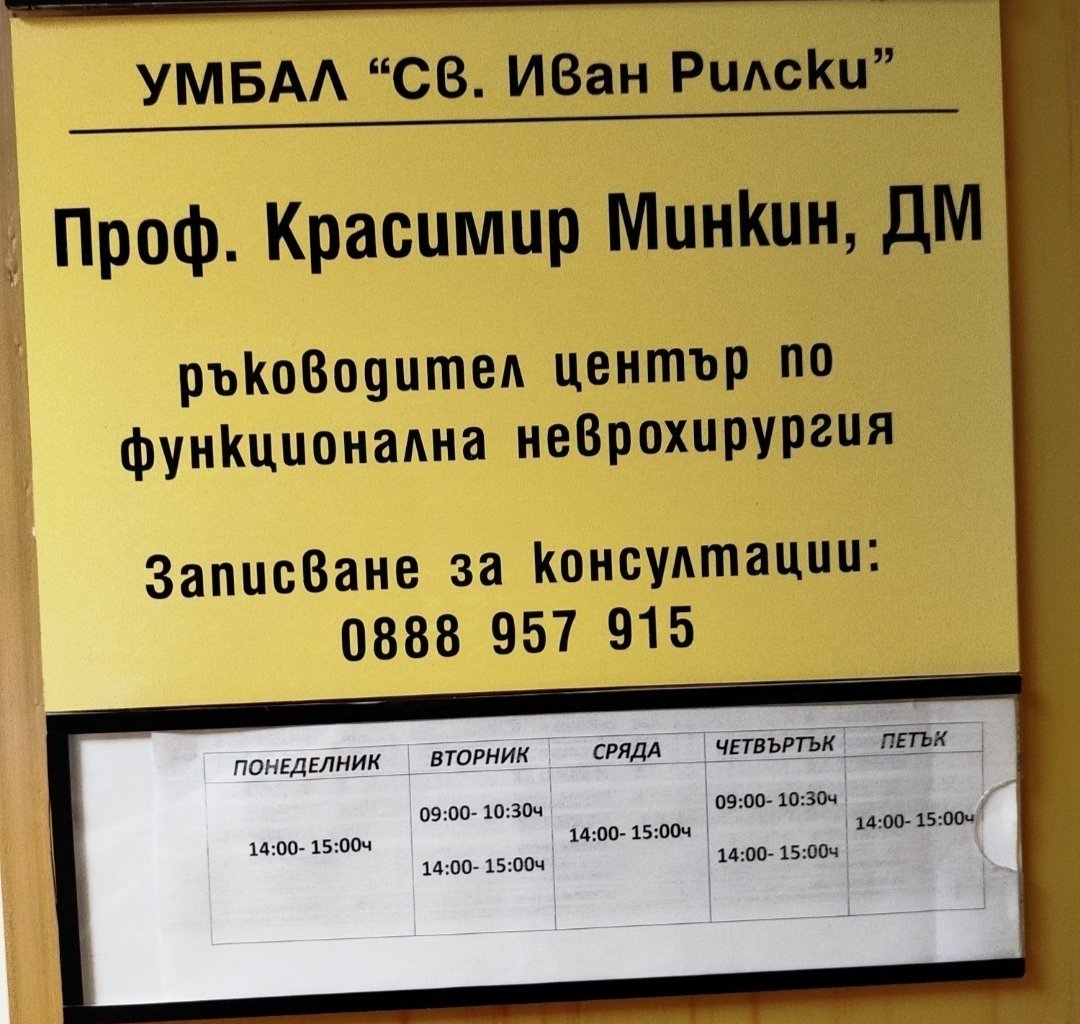 Аз му звъннах по телефона, който е даден в сайта му, обясних му на кратко каква е ситуацията и ми даде час за след два дни в Пирогов. За операция не успяхме да се доредим при него, защото мисля, че оперира последните две седмици на месеца и графика му беше пълен, а нямахме време да чакаме следващия месец.