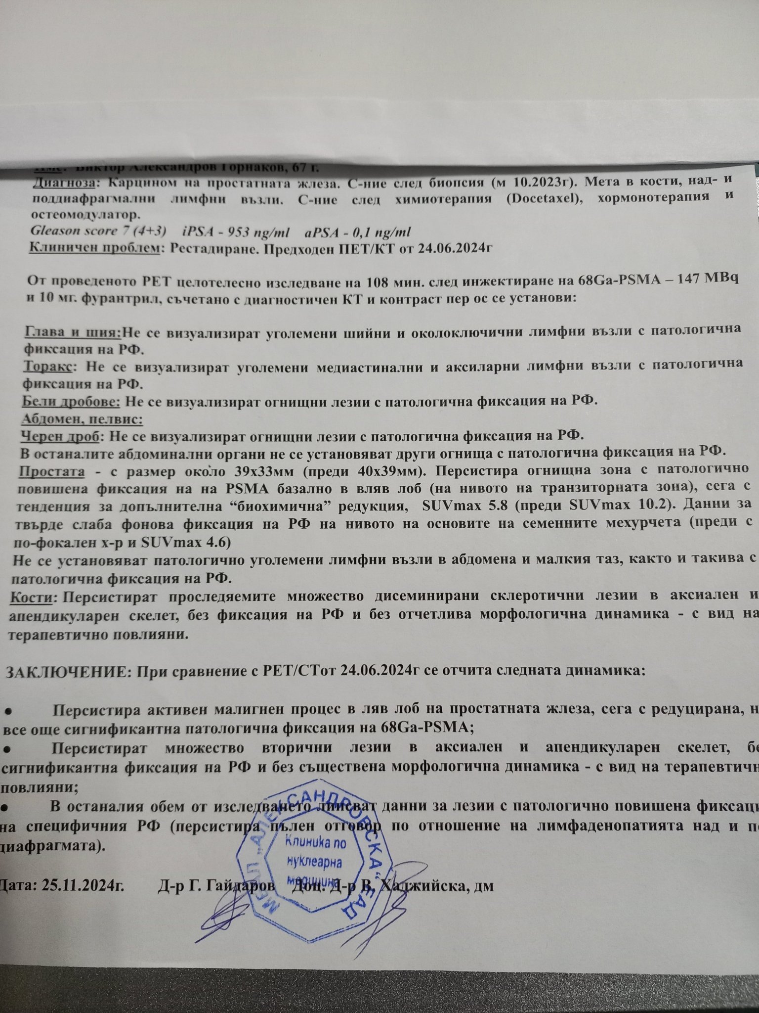 Здравейте, взех поредният резултат от ПЕТ скенер на съпруга ми и моля някой да ми напише с прости думи какво е положението.