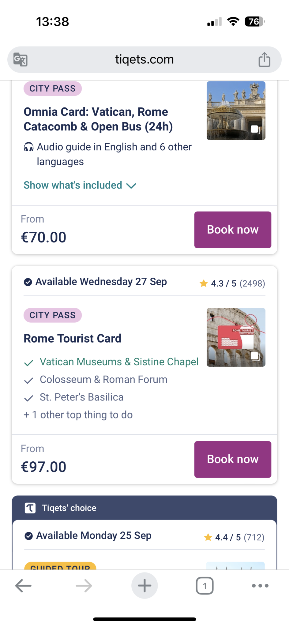 За да посетите Ватиканските музеи, Сикстинската капела и базиликата Свети Петър, трябва да закупите отделни билети. Можете да ги получите от официалния им уебсайт или чрез платформи като GetYourGuide. За Колизеума и Галерия Боргезе е по-добре да използвате Roma Pass, който включва и обществен транспорт. За Колизеума и Римския форум можете да закупите комбинирани билети, които са валидни в рамките на 2 дни след активиране. Проверете уебсайтовете на отделните места за безплатен достъп в определени дни.