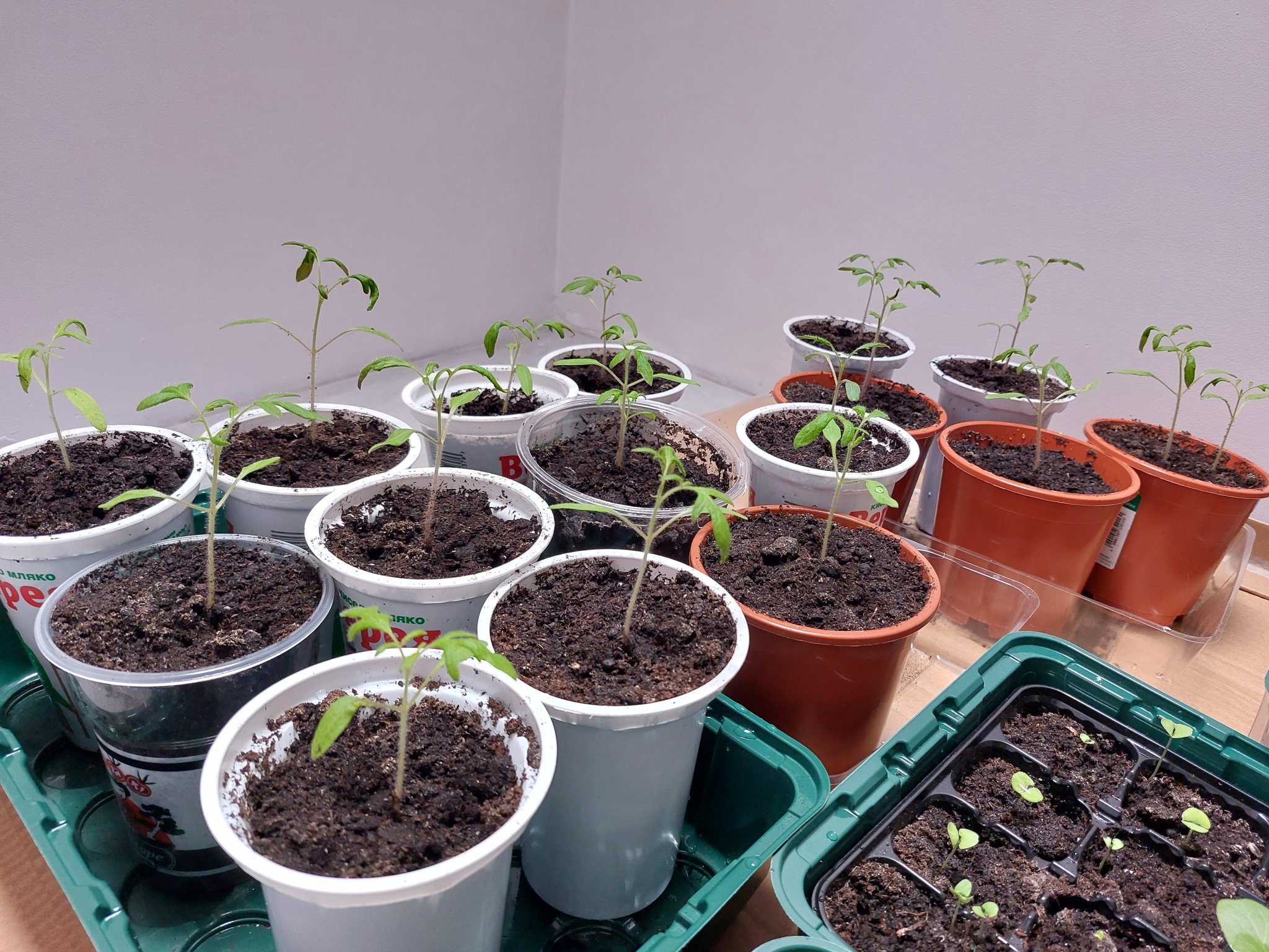 Скоро част от тях щяха да почнат да пускат цветове и не исках да чакам повече. В кофите редовно изсъхваха и полягаха, след което се изкривяват и само се мъчеха. Дано оцелеят, а догодина ще почвам месец по-късно с разсада.