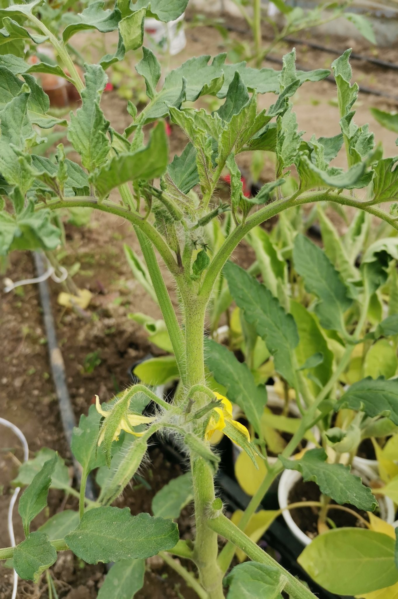 Преди пет дена засадихме и чери доматите, още са си бебета, но поне са в оранжерията. Прихванаха се, не са клюмвали.