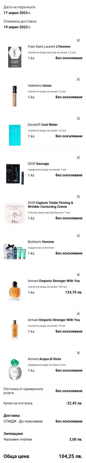 Хората очакват от уебсайтовете за парфюми точна и изчерпателна информация, лесна навигация, опции за контакт по телефона, безплатни мостри, конкурентни цени, бърза и безплатна доставка при поръчки над определена сума и допълнителни комплименти към поръчките. Някои очаквания включват правилно обслужване на клиентите, предлагане на тестери, конкурентни цени, безплатна доставка при по-големи суми, стабилни цени, избор на нишови и дизайнерски парфюми.