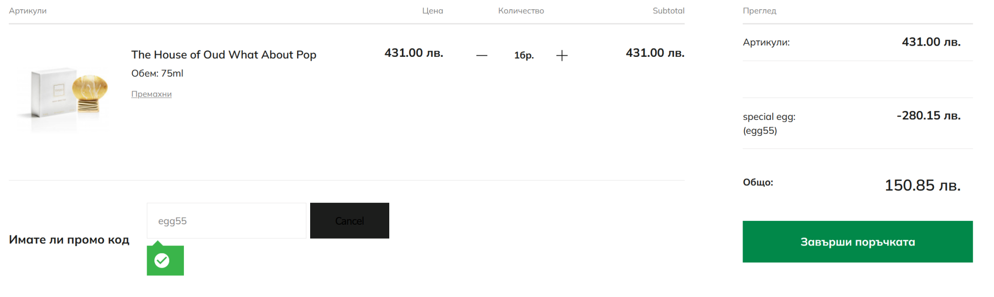 Код egg55 ,валиден от една седмици  за - 65 % на The House of Oud , работи и за 7 мл.