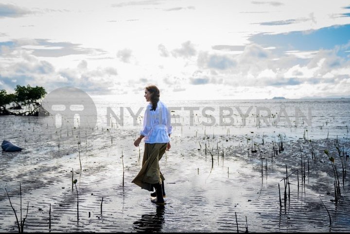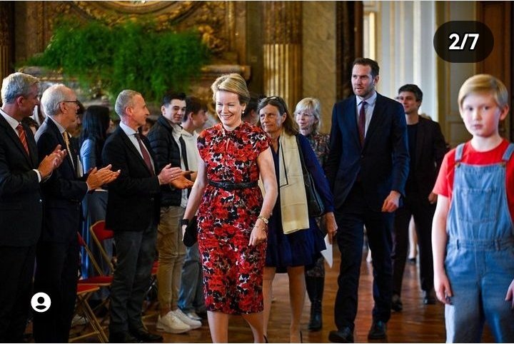 Матилде връчва наградата "Кралица Матилде" вчера. Хубав силует рокля, ужасен десен.