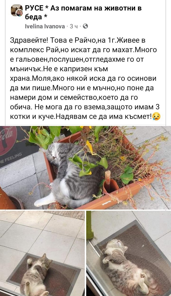 Нямам нищо общо с жената, качила Райчо, но е много сладък и заслужава дом.