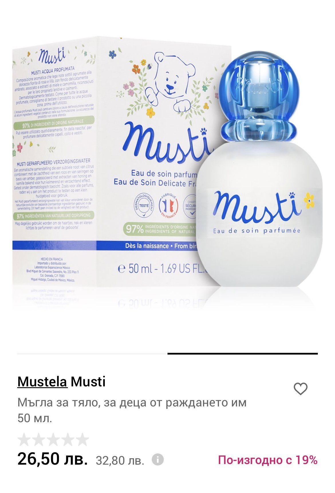 Мустела имат детски парфюм.Предполагам е изчистен от всичко вредно.