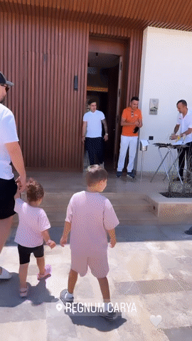 Посвещението гласи: "Честит ден на бащата, любов моя, нашите дъщери и аз те обичаме толкова много, радвам се, че те имам".