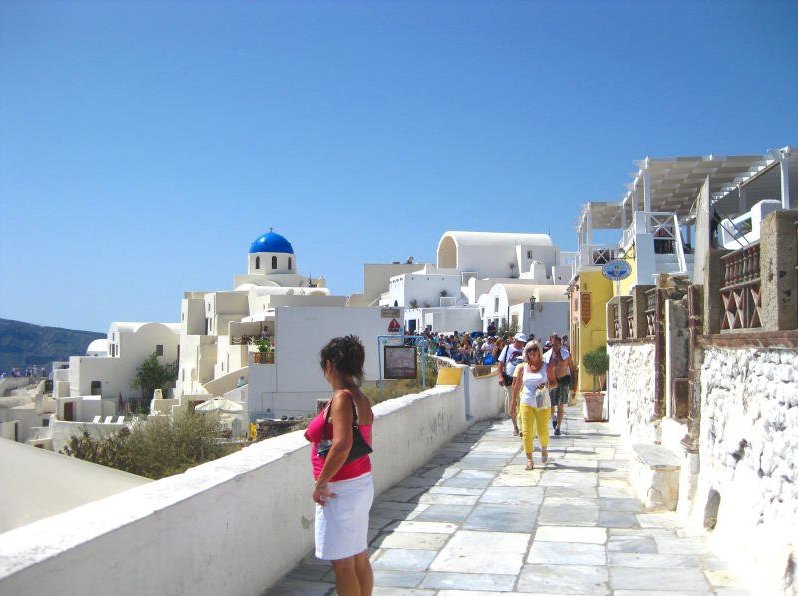 Тук се опитваме да избягаме от една група екскурзианти, която се появи по улиците на Ия:
