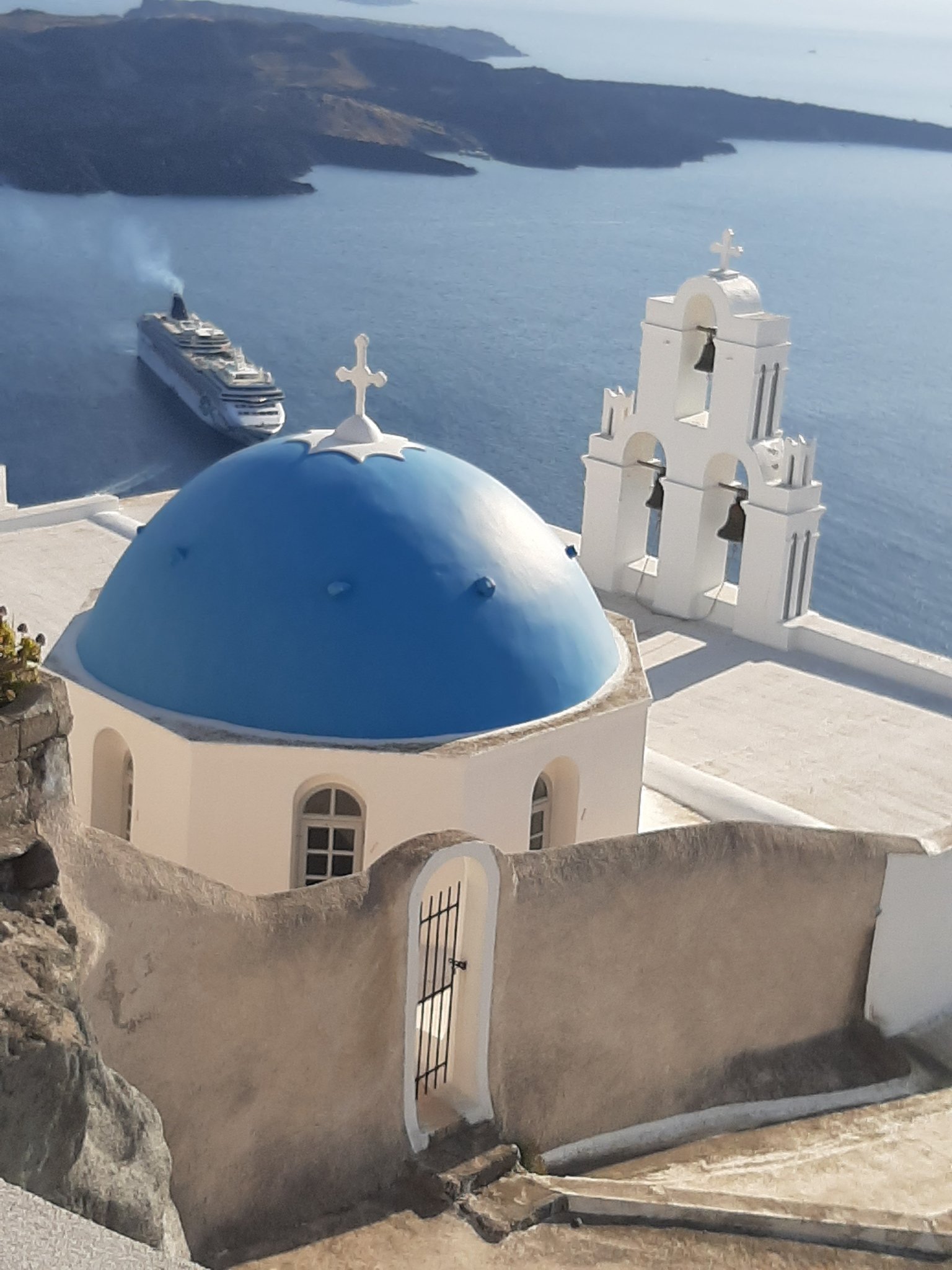 Туристически...комерсиален....но за мен за Санторини е със специално място във сърцето ми  Blue Heart...Трябваше да бъдем там за сребърната ни сватба,  но тогава нямаше полети ...И затова щом възстановиха полетите предната година набързо се организирахме и в края на май бяхме там...3 нощувки...но ранно кацане и вечерно прибиране...напълно достатъчно за нас....Все още нямаше тълпи и беше разкошно за обиколки...Може би в сезон е тегаво по тесните улички, защото дори тогава на места си имаше струпвания, въпреки че ковида  още не беше отшумял и туризмът плахо се възстановяваше....