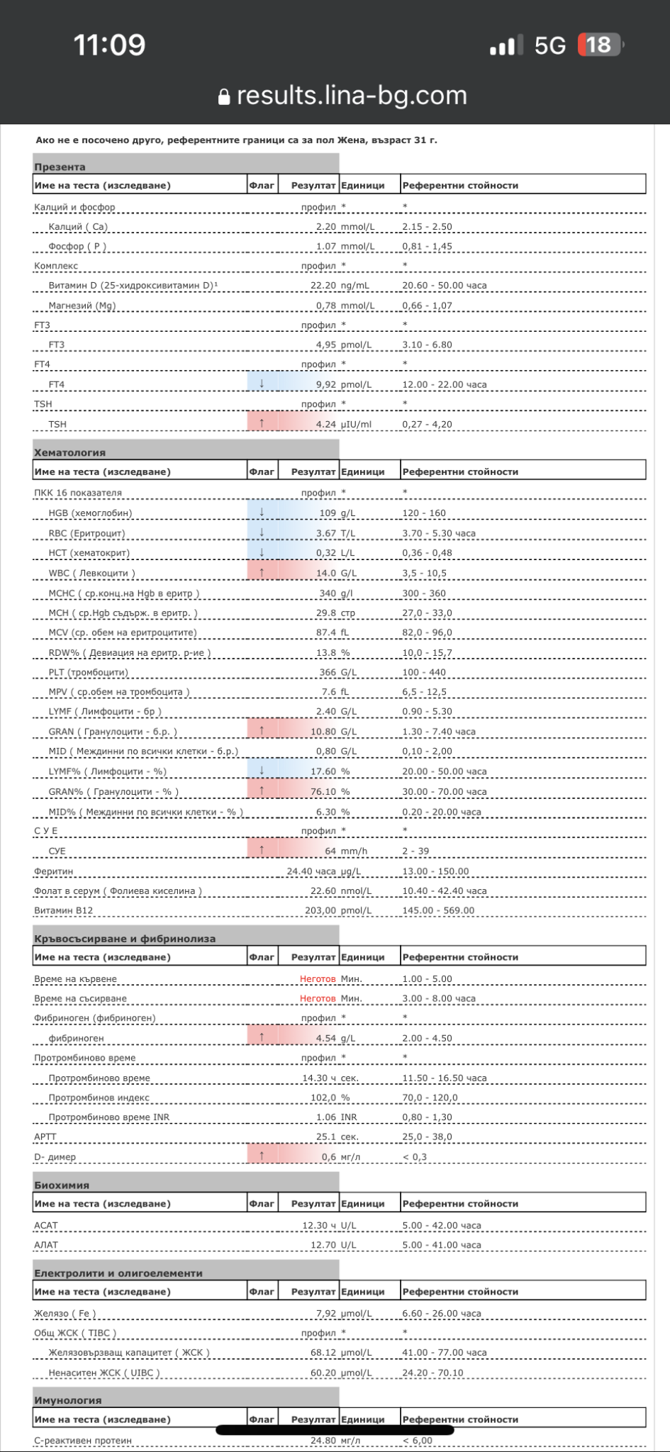 На една приятелка и ги бяха объркали бяха я изкарали с 5-6 мутации запукаха я на хепарини ,повтори ги в геника и се оказа че няма нито една от тях , а е само с хегерозигот на фолиевата ,а на мен днес ппк ми излезе само 15мин след като бях дала кръв което ми се стори супер бързо и докато бях онлайн и си чаках останалите резултати първо ми изписа хемоглобин 111 и след 5-7мин ми се смени само на 109 ......еритроцит и хематокрит уж бяха със стойности в норми и те заедно с хемоглобина също ке промениха към по ниски ,буквално го видях с очите си .. което според мен е доста странно ...
