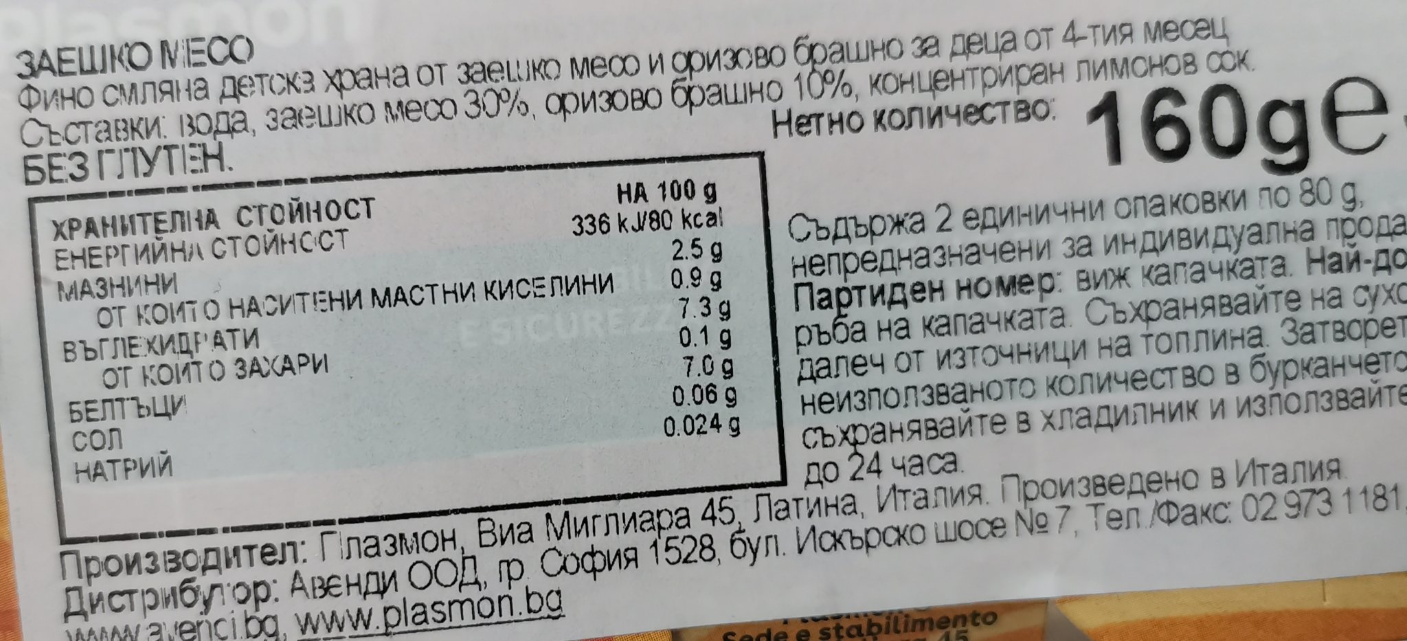 Сложих 90 гр зеленчуково пюре + едно бурканче плазмон заешко 80 гр