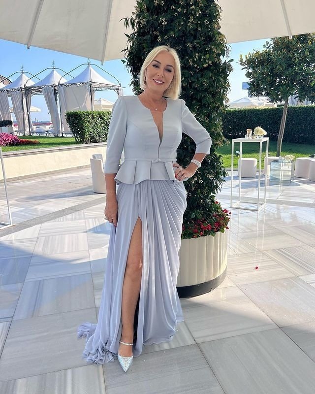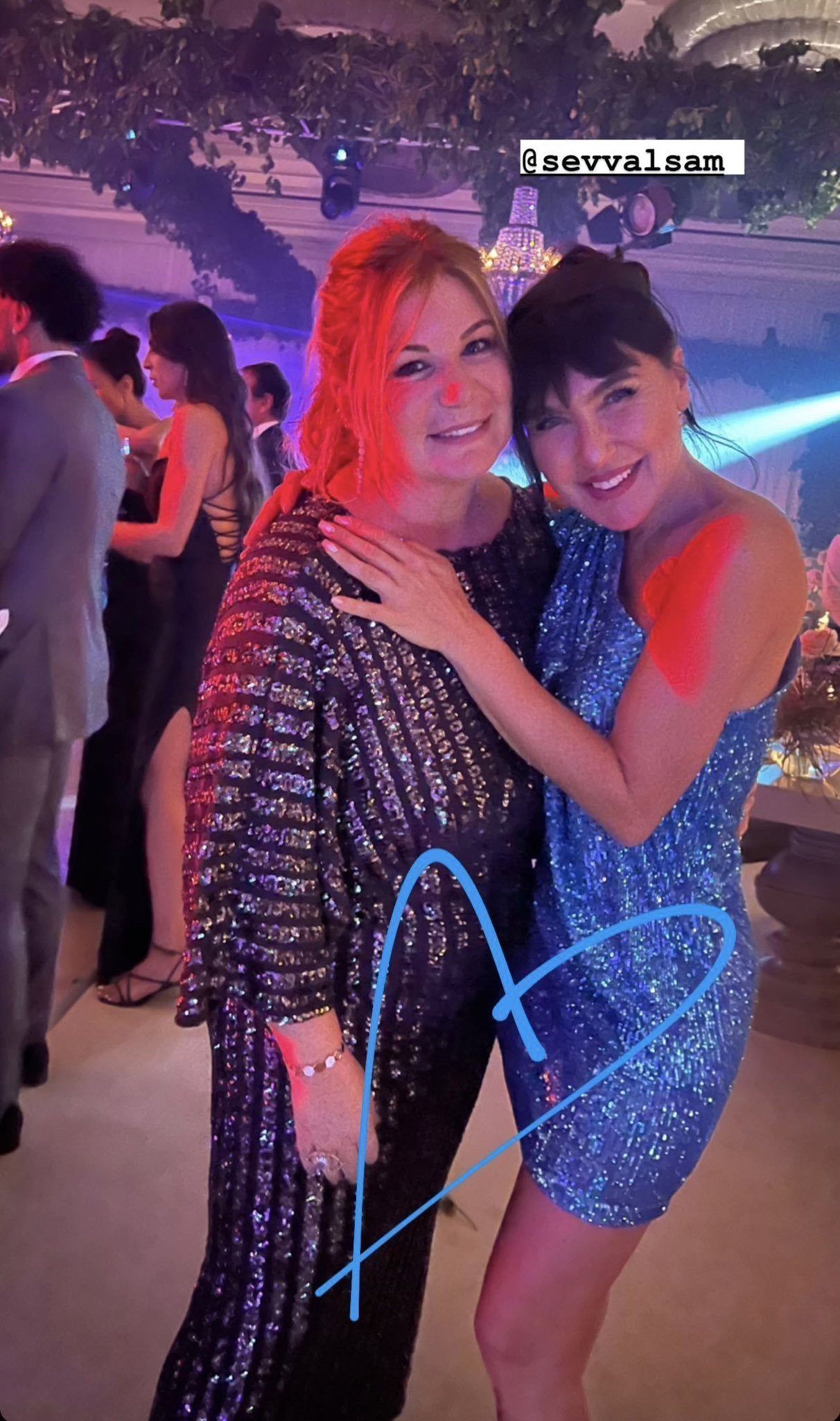 Шевал и тя е е сменила роклята (къс син бляскъв металик). И двете с по три рокли.