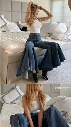 Диди, момичето не е паднало толкова ниско, че да рекламира "намачканите си чаршафи". Не забравяй, че тя е инфлуенсър. В случая промотира  панталон и обувки.