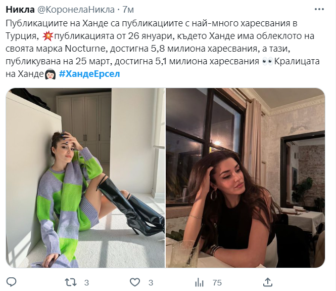 Слънчице, Ханде, както винаги е прекрасна. Тази нова реклама на Nocturne с Бамби веднага ме накара да направя паралел с една инфлуенсърка. Няма никакво съмнение, коя е кралицата.  Няма място за сравнение.