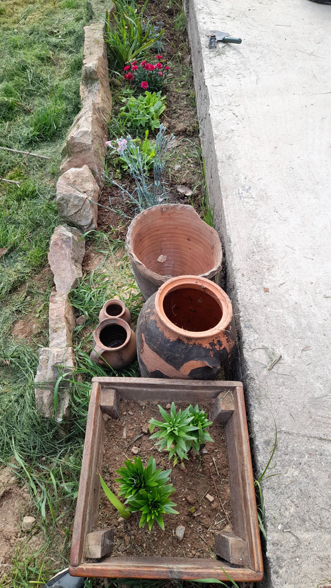 Обаче си счупих единия цвят на щамбовата роза като я пренасяхме. Направо се разрешава от яд, от години не ми се беше случвало. Опитахме го с домакинско фолио и се моля да се закрепи. И доматитО насадих. Махнах ме едни метални конструкции пред площадката, направо му се такова таковата на мъжа ми. Обаче разчистване да я продължим. Кипи усилен труд