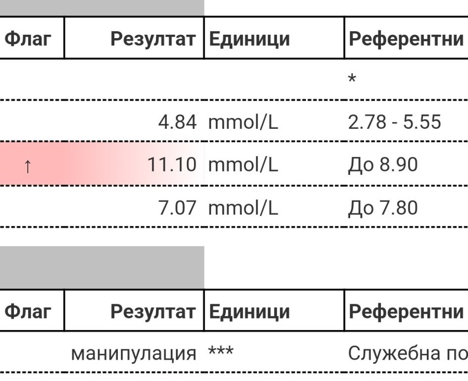 1 път в месеца като ходя на ендокринолог за щитовидната винаги пускам кръвна захар. Не съм била с висока захар, 5.1 ми беше най-високата стойност и то първия триместър.  После падна под 5 и последната стойност миналата седмица беше 4.16. Днес резултатите направо ме шокираха. Имах 13ч от последно хранене преди първата проба. Какво стана, как стана... неизвестни причини ще си останат. Не съм яла нещо сладко вчера, обикновено до обяд си ям въглехидрати и после нещо леко. Никаква промяна в режима от предната седмица.  Да, ама...