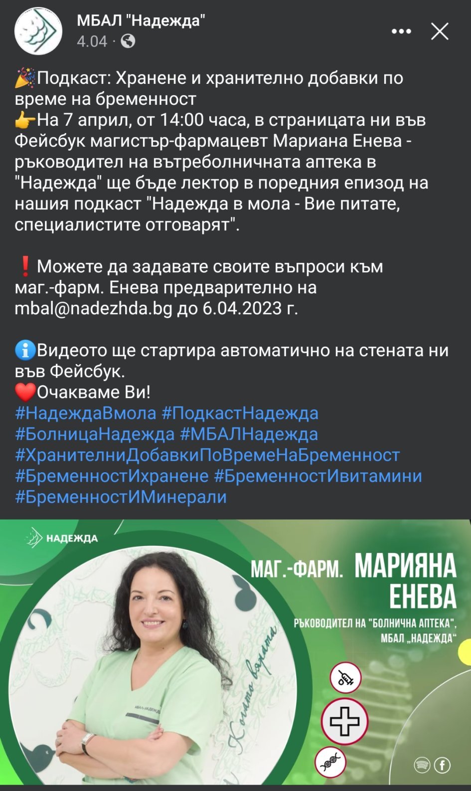 Скоро гледах и един подкаст с фармацевтката на болница Надежда,за храненето говориха ,много ми допадна.