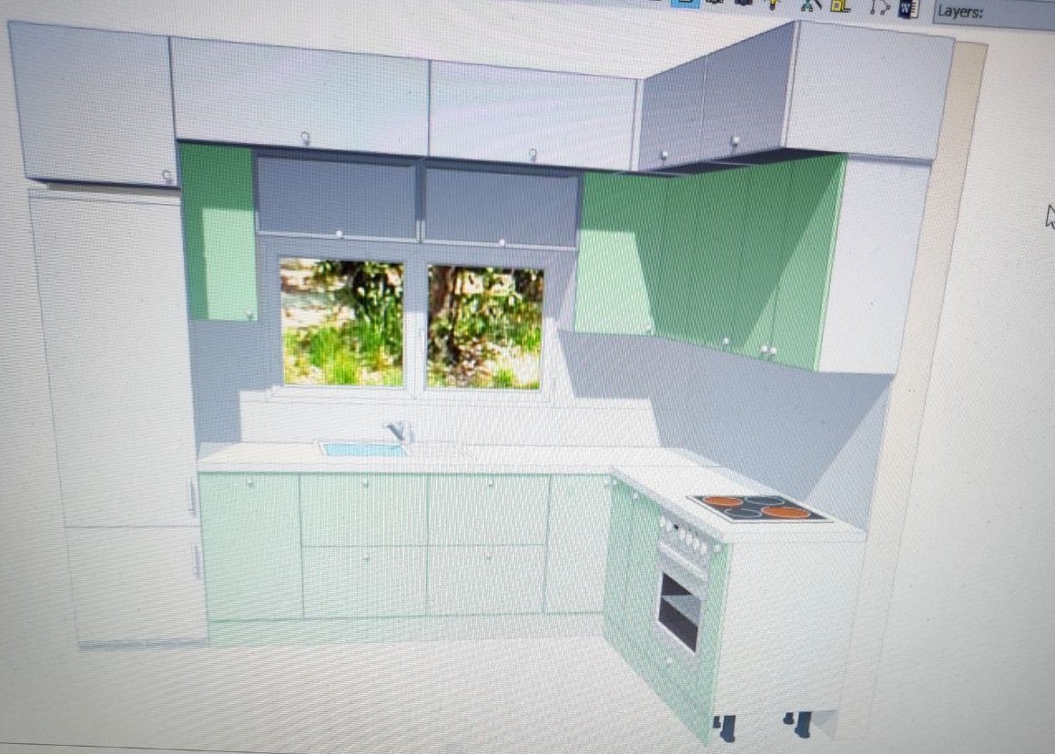И горнире се променят като долните... Ако ще размества, доколкото разбирам тя не иска, се местят един 40 горе и долу до стената и става втори шкаф печката, в така направената кухня бутилиерата си остава вляво.