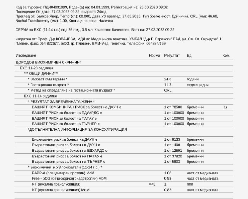 Аз също мислех, че като имам пренатест и ще отпадне БХС обаче все пак ми пуснаха изследвания заради прееклампсията.