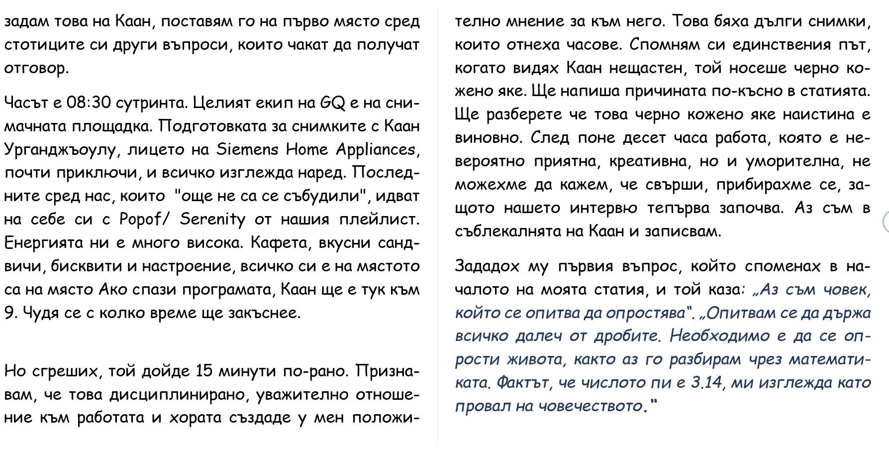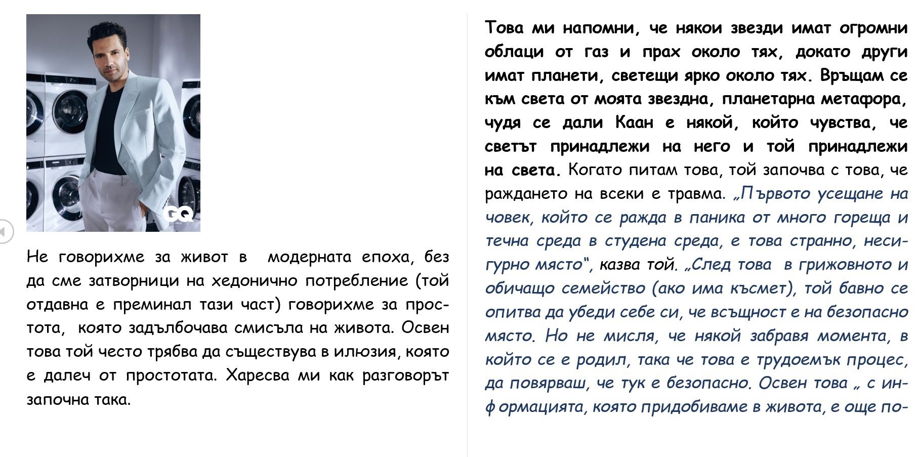 Интервюто на Каан за GQ