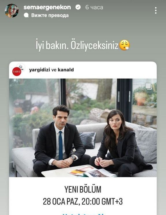 Дефне видя със собствените си очи как пращат Кадир в затвора. Имаха много хубави сцени батко и сестричка. Чънар продължи да се изживява като жертва, спал цяла нощ на онзи изоставен строеж където убиха Сердар. Парла го намери там, но нашият лигльо и пред нея игра по струната "аз съм вечно неразбран, мен никой не ме иска". Да хванеш и да го плеснеш. Или да ги затвориш в една стая с Айлин и да се оплакват заедно един на друг. Поне да не пречат на другите.