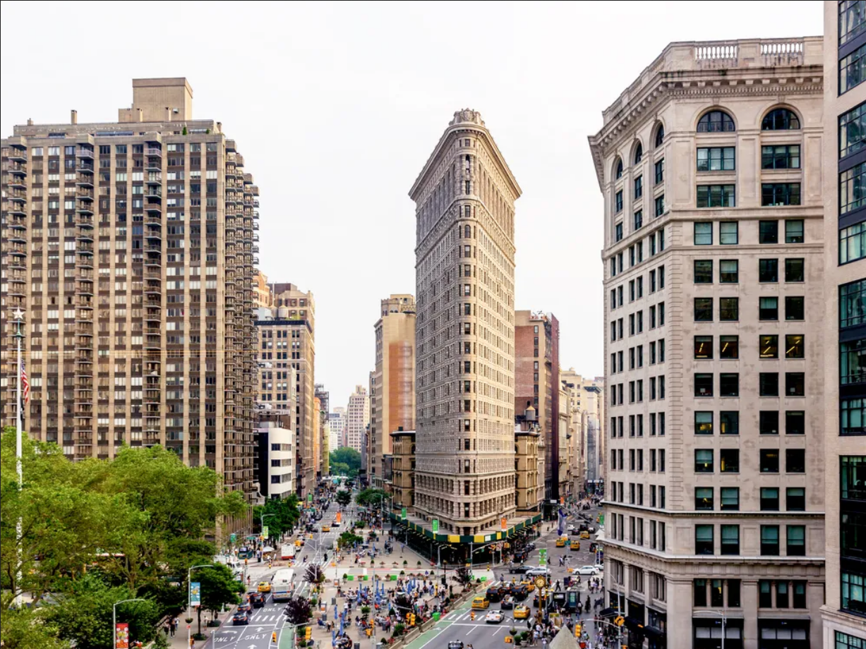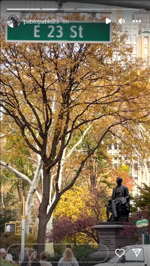 Пред бронзовата статуя на Уилям Хенри Сюърд -  държавен секретар на САЩ при президента Ейбрахам Линкълн. Посреща посетителите, които влизат в Медисън Скуеър Парк през входа на Бродуей и 23-та улица. Отсреща е Флатайрън Билдинг - втората снимка