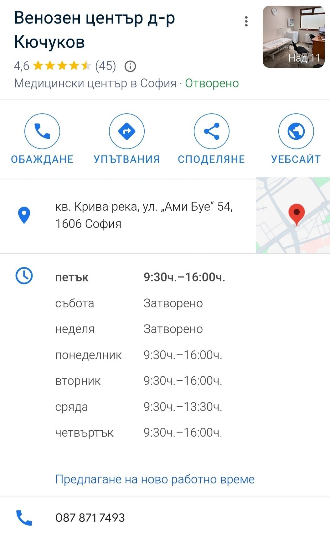 Здравейте! Искам да направя консултация със съдов хирург за подходяща за мен процедура за премахване на разширени вени. Видях положителни коментари за доктор Милена Ангелова. Моя позната пък ми препоръча доктор Кючуков. Ще се радвам да ми помогнете с избора. Също ако някой е ходил скоро при доктор Ангелова- каква е цената на прегледа без направление?