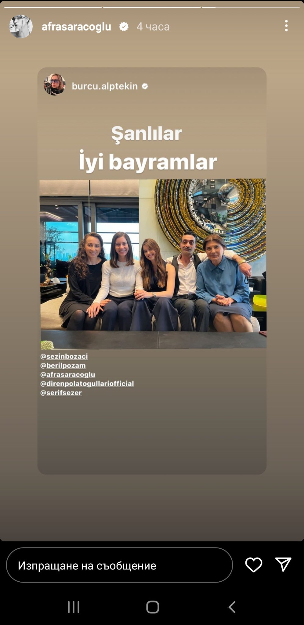 Една снимка от епизод 30. Толкова народ. Коментарите са, че Сейран е облечена като за у Феритовата къща-със същият гащеризон, с който снима стори онзи ден, още е с халката. Явно вече не е заключена нито в едната, нито в другата къща. Обаче в 30 епизод снимки има и Зерин в къщата на Корхан, за Пелин нищо не прочетох. Взе да ми липсва това момиче Joy