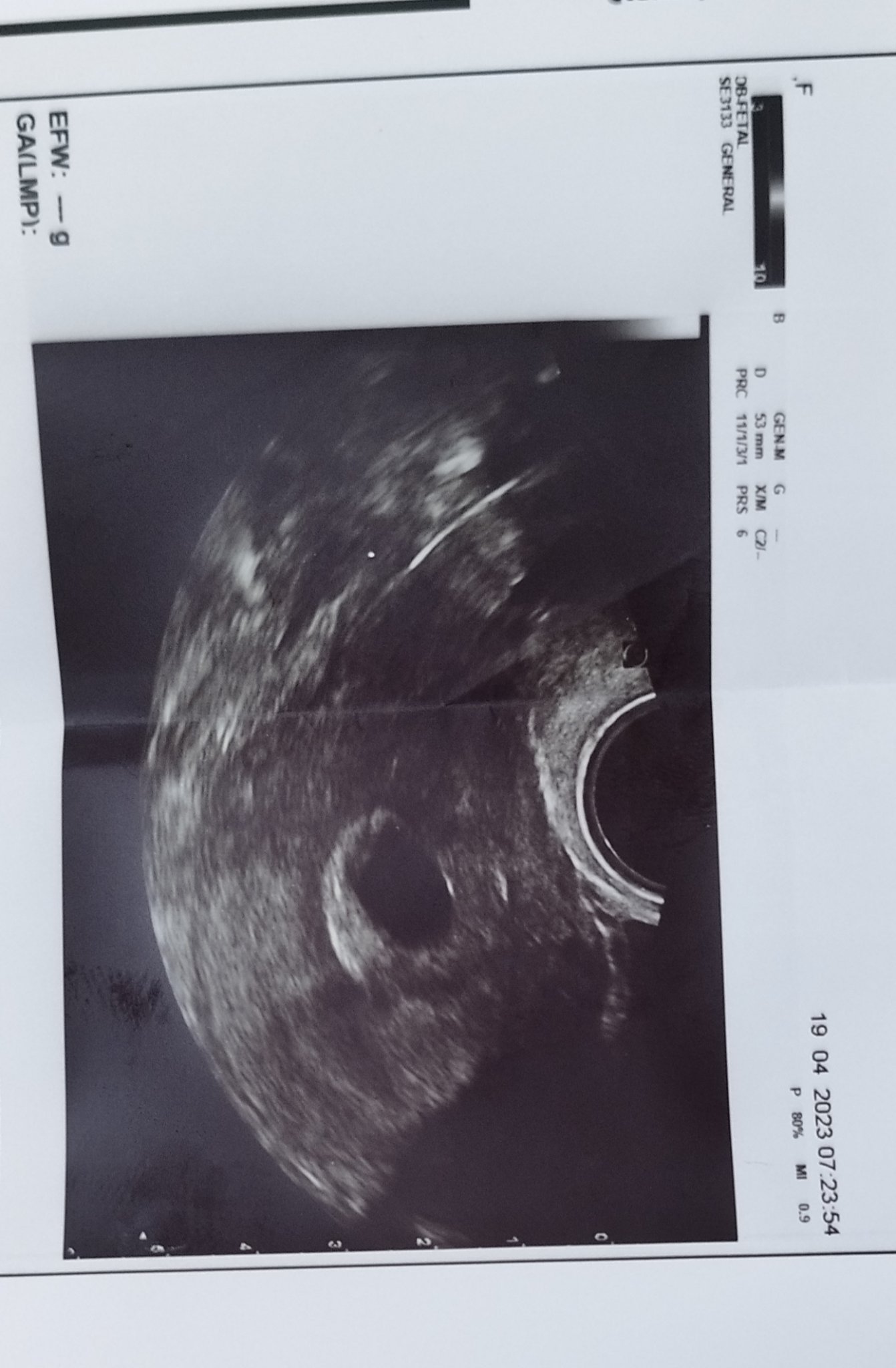 Четвъртък и петък леко прокървих к днес бях на преглед вместо понеделник. Думите на АГ бяха "То тука голямо мазало". Ембрион не се видя. Видя се много кръв в сакчето, видяха се и някакви размазани петна, каза че ембрион не вижда и 99,9% няма такъв.