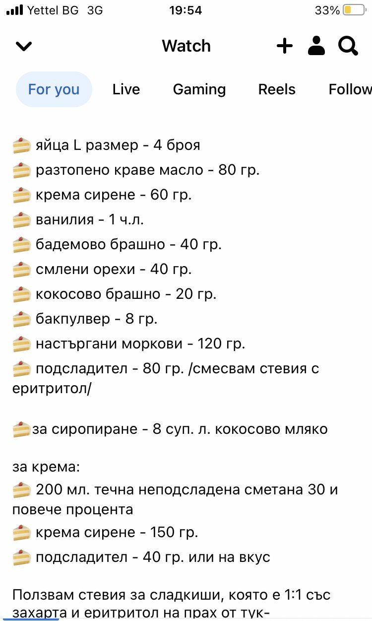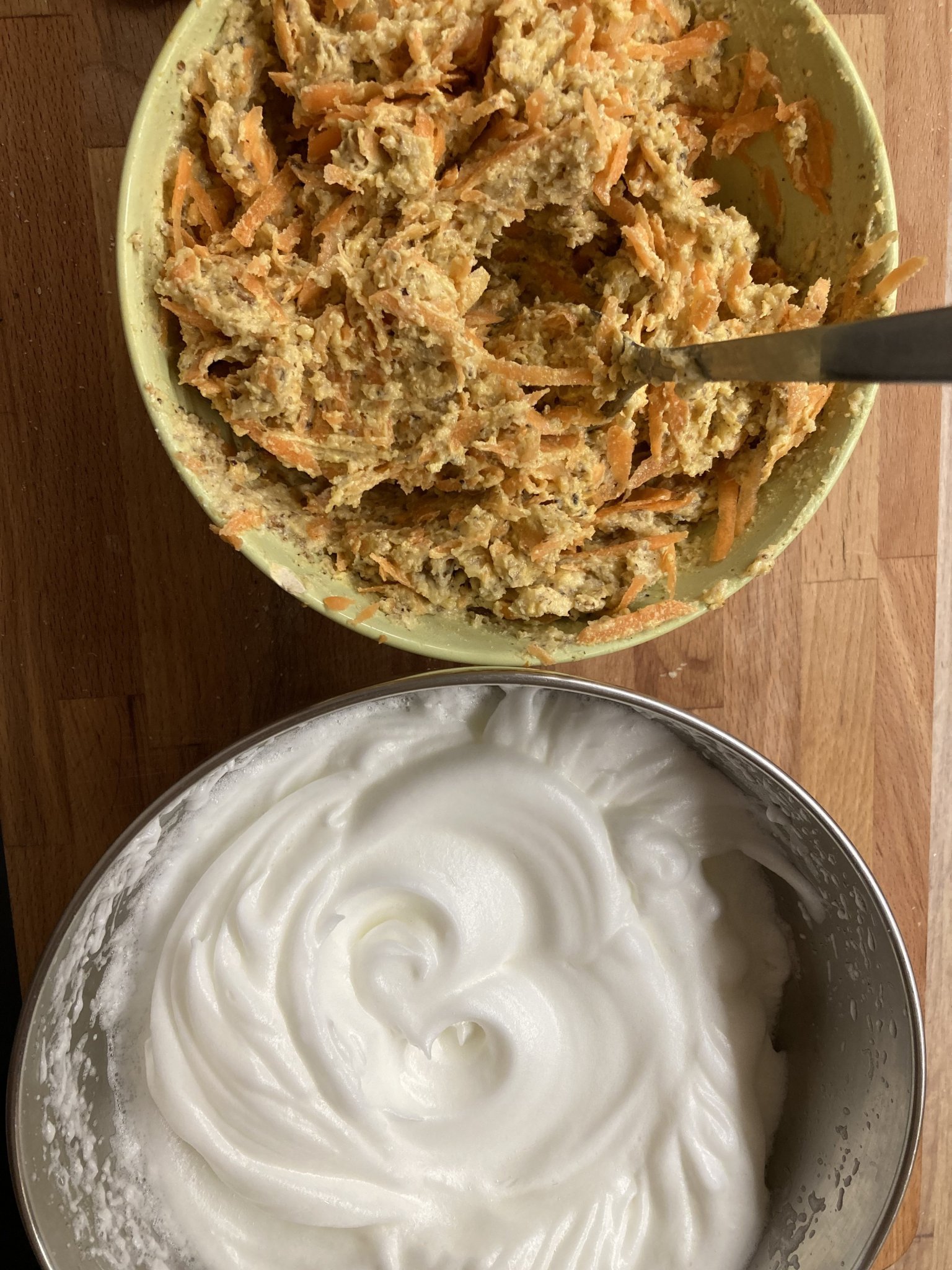 Ураганче, аз правих за дeтето и после за мен (почти една след друга сме с рд) ето тази морковена кето торта (нямах подсладител и ползвах по малко мед). Както и замених бадемовото с 3/4 чаши смлени орехи + допълвам чашата с едро нарязани. Лесна е и вкусна