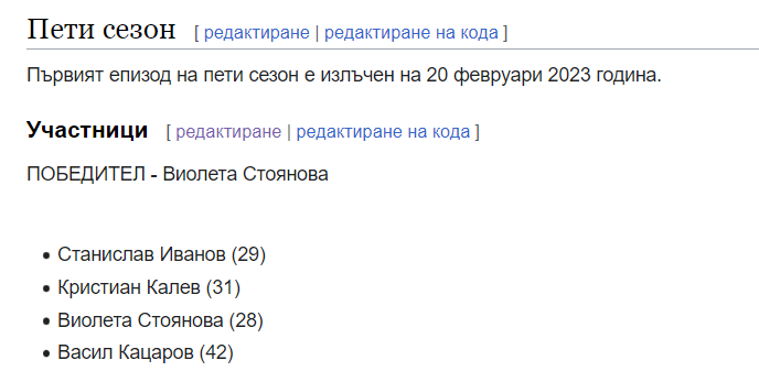От отпаднал участник знам, че мъж печели, аз не исках да ми каже кой, беше готов да сподели