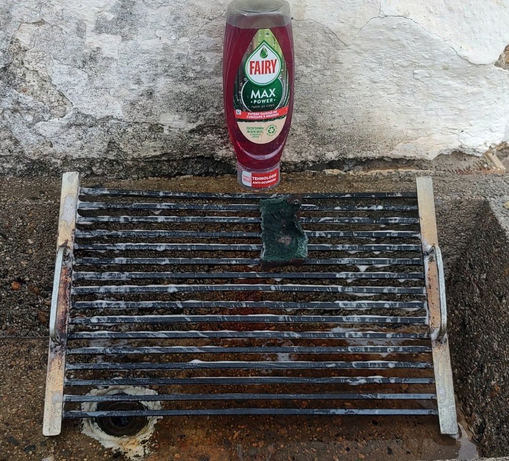 Сега по същество: занесох бутилката Fairy Max Power в селската ни къща и измих посудата от барбекюто без никакви проблеми, при това със студена вода, защото там и това нямаме все още.