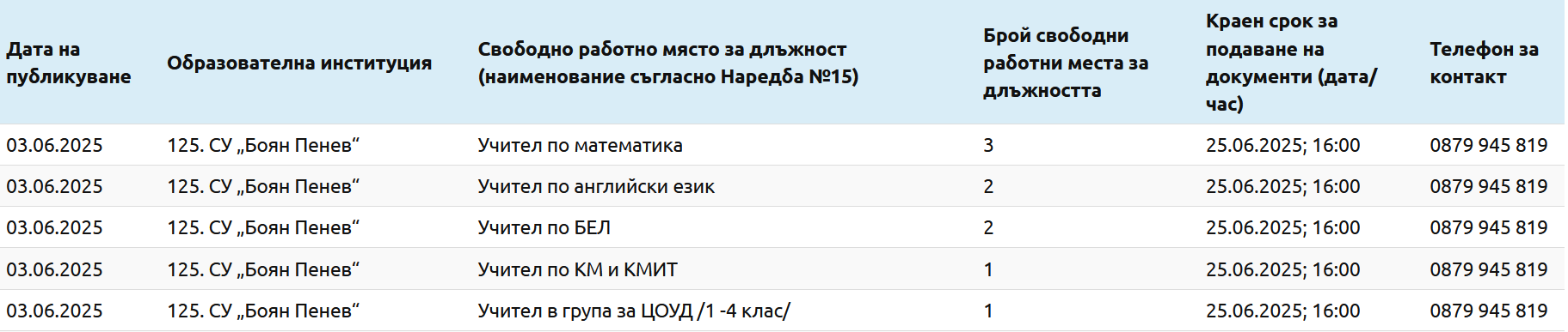 Някой знае ли кои са учителите които са напуснали в 125-то, за да търсят толкова много нови: