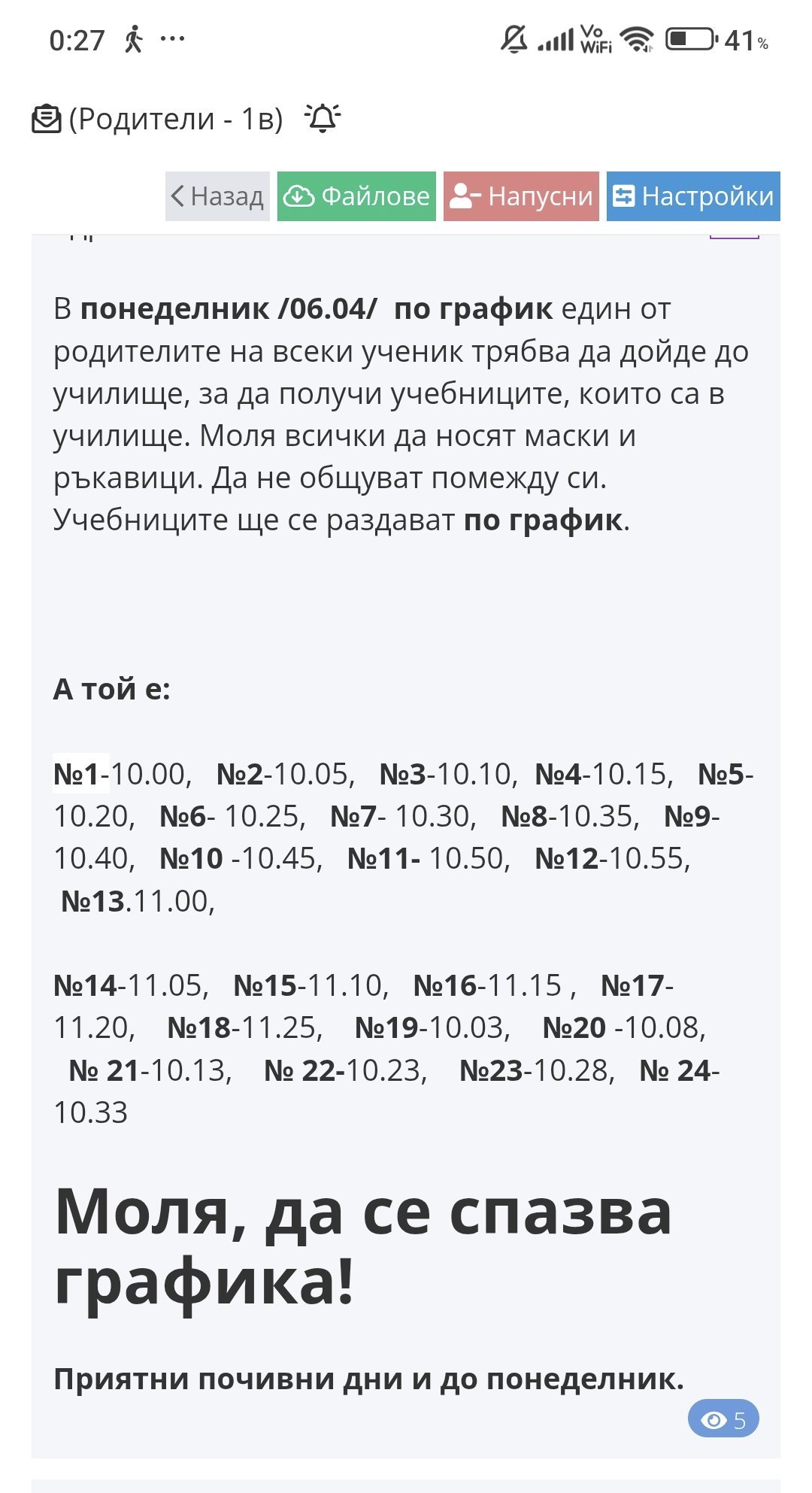 П.П. Поиграх си и  разтърсих в школо из съобщенията от времето на пандемията. Поствам скрийншот, видно от който още в началото на м.април учебниците бяха предадени на родителите