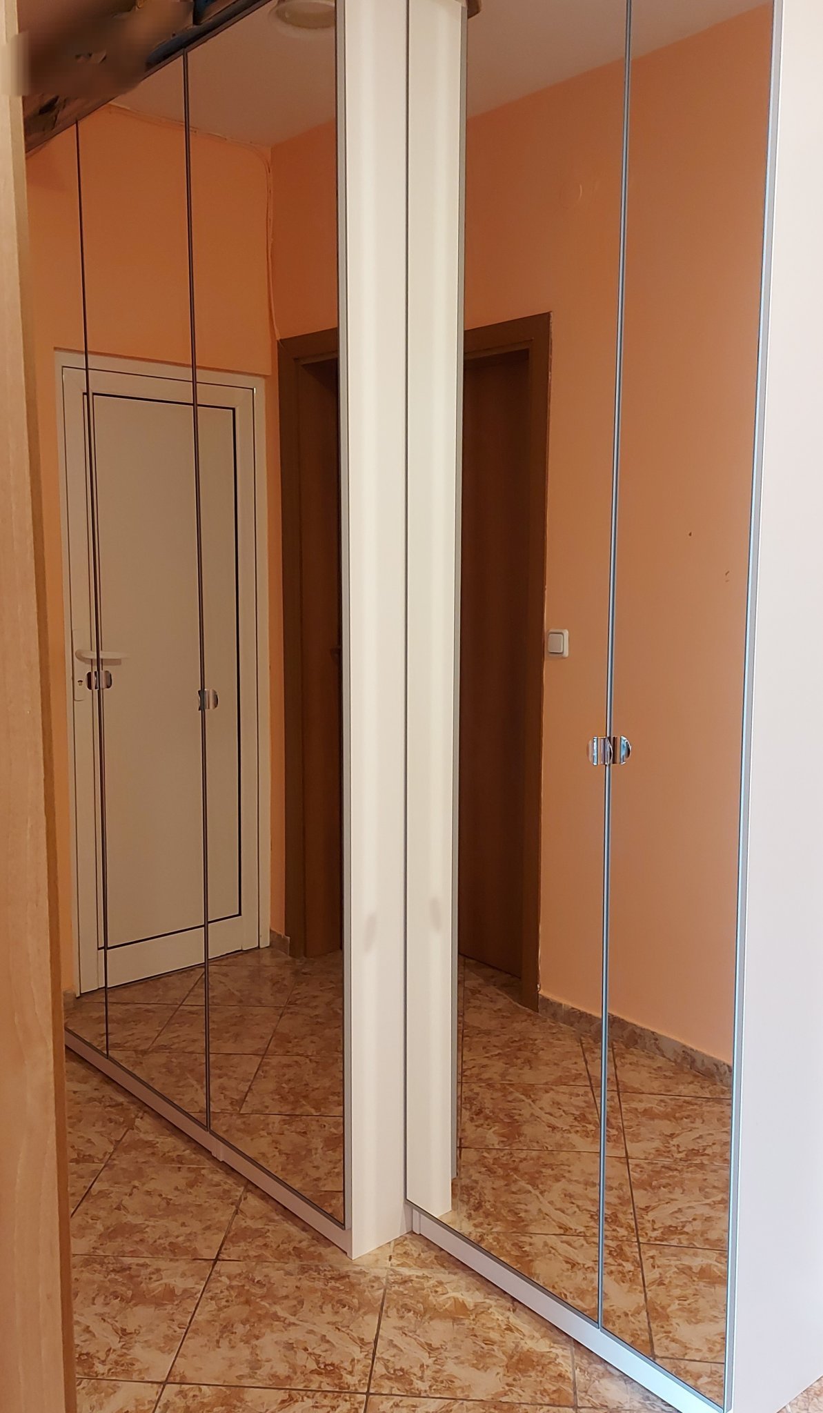 Супер е гардероба -мнооого добра дължина имате,огледалните врати стоят много фино.Със здраве си го ползвайте!