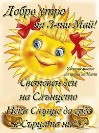 Нина,  не знаех, че днес е такъв ден. Благодаря, че  ни разказа! Слънцето е дошло при нас.Сутринта е преваляло,но аз тогава съм спала,  а  към  10 грейна.Сега  чат-пат се скрива зад облаче, пак се показва, но е  доста хладно.