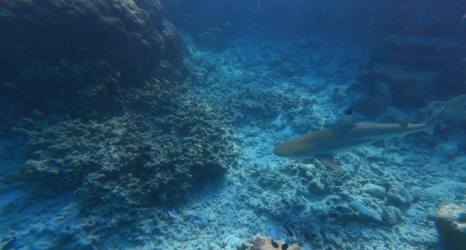 На Курамати е много удобно за начинаещи и страхливи шнорехелисти Simple Smile Ние там ходихме с ММ, той си влизаше навътре, аз в началото си стоях хваната за стълбата дори. После се престрашавах по малко да плувам около кея. Дълбоко е може би 3, 4 метра, различно е. Но под водата е нещо невероятно. Акули и разноцветни риби наоколо, във всеки един момент си плуват около нас. Няма нужда да плуваш до там, директно се потапяш и си в приказката.